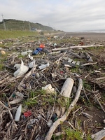 漂着物が打ち上げられた砂浜海岸