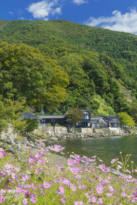 海津の石垣とコスモス