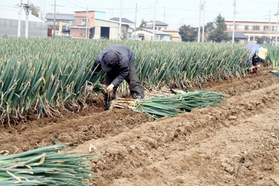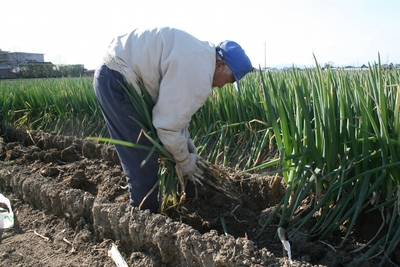 深谷葱の収穫
