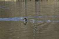水面を走るカイツブリ