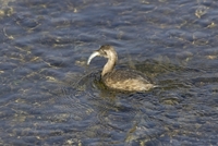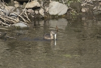 魚を捕らえたカイツブリ