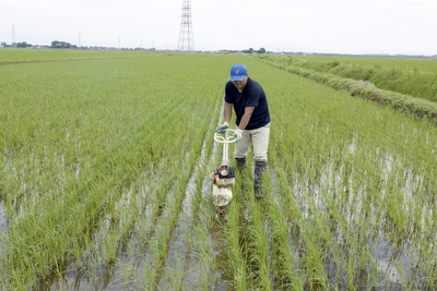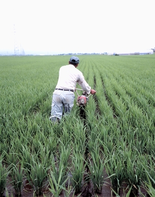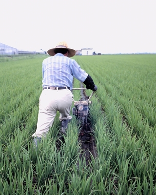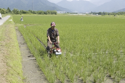 庄内平野の米づくり、溝切り作業
