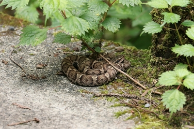 木の葉の下で涼をとるマムシ