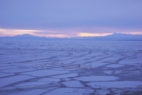 オホーツク海の流氷の朝と白鳥