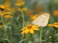 百日草(ジニア)花とモンシロチョウ