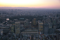 夕景の大手町、丸ノ内周辺より富士山