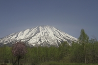 羊蹄山と真狩神社の桜