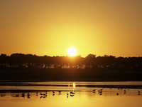 夕日とハクチョウ