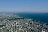 平塚の街並みより江の島方面の湘南海岸線