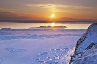 能取岬の日の出と流氷