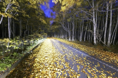 糠平湖畔の遊歩道と落ち葉