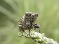 アブラゼミを狙うハラビロカマキリ