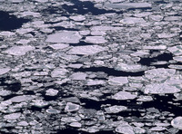 ハス葉氷の流氷。知床・チカポイ岬にて 世界遺産