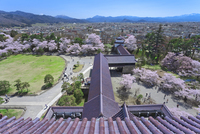 桜の鶴ヶ城公園と会津若松市街