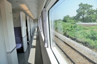 特急列車のコンパートメントと通路