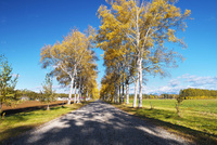 白樺の紅葉と道 十勝牧場