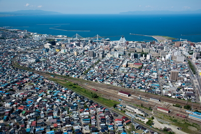 青森市郊外より青森市街地,青森港