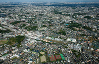 成城の街並みと成城学園駅より都心方面