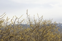 宝登山ロウバイ園のロウバイと山並み