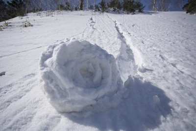 斜面をころがる雪まくり