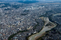 多摩川(青梅の町並みより奥多摩,上流方面)