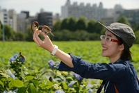 スズメ巣立ち雛(親が餌を運んでくるのを待つ)