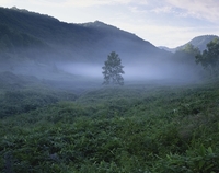 志賀高原・朝霧の草原