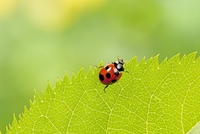 ナナホシテントウ 葉を歩く