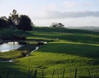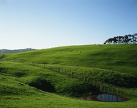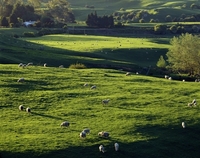 緑豊かな牧場と羊の放牧