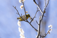 白い梅の花とメジロ