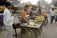 通りで果実を売る